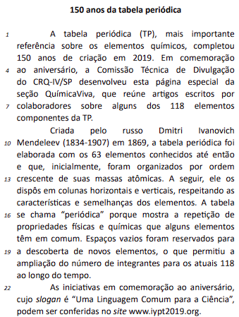 Considerando os aspectos linguísticos, de estrutura e de conteúdo, julgue o item. O termo “ele” (linha 13) é um pronome pessoal do caso oblíquo, que se refere a Dmitri Ivanovich Mendeleev.