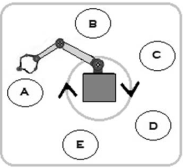 Em uma feira de ciências, cinco crianças, designadas pelas letras A, B, C, D e E, participarão de um experimento no qual um robô distribuirá três tipos de bala: de morango, de laranja ou de hortelã. A cada nova rodada, somente uma bala será dada pelo robô a cada criança, partindo-se da criança A até a criança E, em ordem alfabética, conforme ilustrado na figura a seguir.