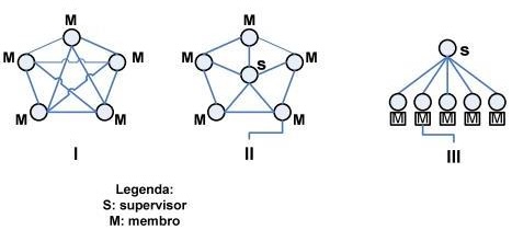 Na empresa ALFA, o supervisor (S) perderá o seu papel de comando tradicional e passará a ser o “mentor”, “apoiador”, “indutor” e “orientador” dos membros da equipe (M). A figura abaixo representa, em uma ordem qualquer, três estágios (I, II e III) de maturidade possíveis em que se podem encontrar as equipes de trabalho.