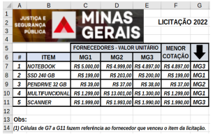 II. Nas células G7, G8, G9, G10 e G11, foram inseridas expressões usando a função SE para mostrar o fornecedor que venceu a licitação para o item considerado, com base na menor cotação.
