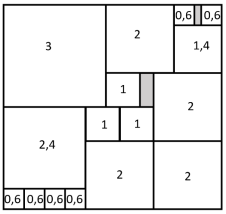 Piet Mondrian foi um pintor holandês modernista. Criou o movimento artístico neoplasticismo, colaborou com a revista “De Stijl” e depois com as formas da pintura concreta. Baseada na obra "Composição com Vermelho, Amarelo e Azul", de Piet Mondrian, dois amigos resolveram elaborar uma arte em uma parede, de acordo com a figura abaixo: