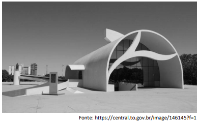II. A obra foi realizada em concreto e apresenta curvas sinuosas, características próprias do Barroco das cidades mineradoras, estabelecendo visualmente uma continuidade entre o Barroco do passado das cidades mineradoras e o presente do Tocantins.