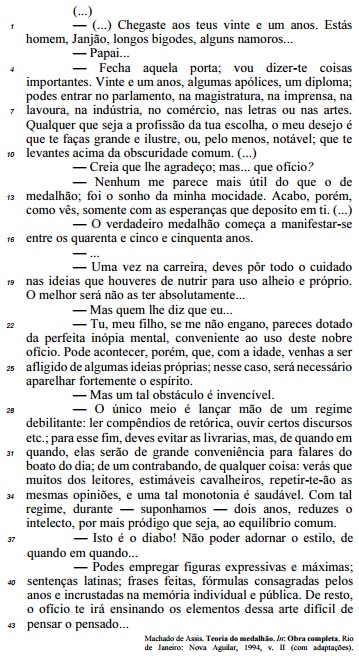 No que se refere à linguagem, à tipologia textual, às ideias e aos aspectos gramaticais do texto ao lado — Teoria do Medalhão, de Machado de Assis —, julgue os itens de 1 a 7.