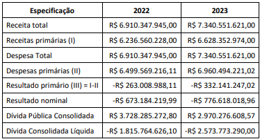 A tabela a seguir consta do projeto de Lei de Diretrizes Orçamentárias (LDO) de um ente estadual relativo ao exercício de 2022, com valores correntes expressos em reais. Os valores correspondem às metas anuais definidas no Anexo de Metas Fiscais:
