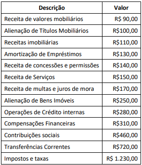 Considere os saldos apresentados na tabela a seguir, com dados extraídos do Quadro demonstrativo da Receita de um ente público estadual ao final de um determinado exercício (com valores expressos em milhares de reais).