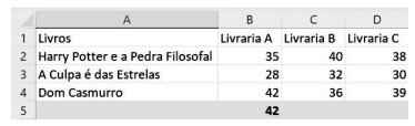 Considere a planilha a seguir, elaborada no Microsoft Excel 365 em português do Brasil.