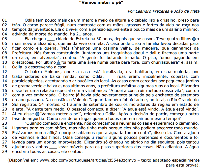 I. O pronome “eles” (l. 24) retoma a palavra “caminhão” (l. 23). II. A expressão “A gente” (l. 09) pode indicar um vício de linguagem. III. Ao falar “meter o pé”, Odila deu a entender que era preciso sair do seu bairro o mais rápido possível.
