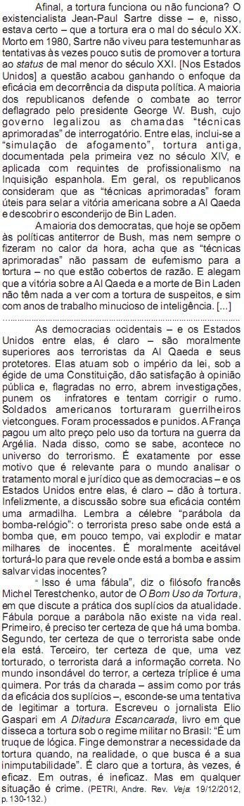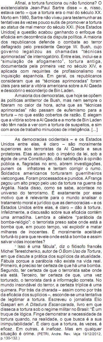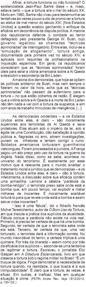 ‘Isso é uma fábula’, diz o filósofo francês Michel Terestchenko, autor de O Bom Uso da Tortura , em que discute a prática dos suplícios da atualidade.” (§ 4)