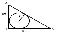 Um agricultor deseja colocar uma cisterna cilíndrica de 0,5 m de altura sobre um terreno que tem a forma de triângulo retângulo. A tampa da cisterna corresponde a um círculo que tangencia os três lados do terreno conforme figura a seguir.