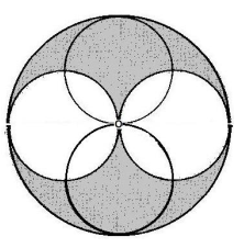 É possível hoje em alguns jogos eletrônicos, através de um dispositivo chamado kinect, interagir com o jogo sem precisar do controle, ou seja, apenas com os movimentos do próprio corpo. Um jogador participa de um jogo o qual consiste em ricochetear bolas sobre alvos em forma de figuras geométricas. A figura 1 mostra o momento em que um jogador acerta quatro bolas em uma figura geométrica na forma de uma circunferência. Considere as quatros circunferências internas tangentes duas a duas entre si no ponto O centro da maior circunferência e o diâmetro das circunferências internas como sendo