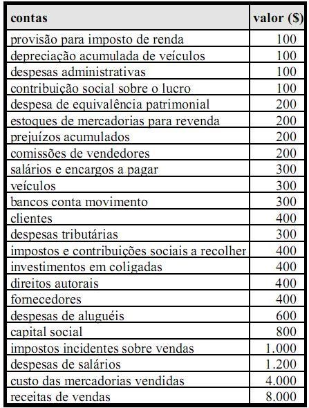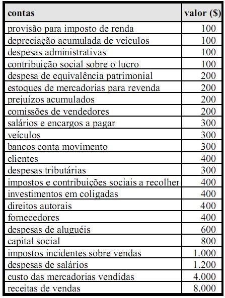 Considerando as contas e os saldos da tabela acima, que representam o balancete de uma empresa em 31/12/X12, antes da destinação do resultado do exercício, julgue os itens que se seguem.