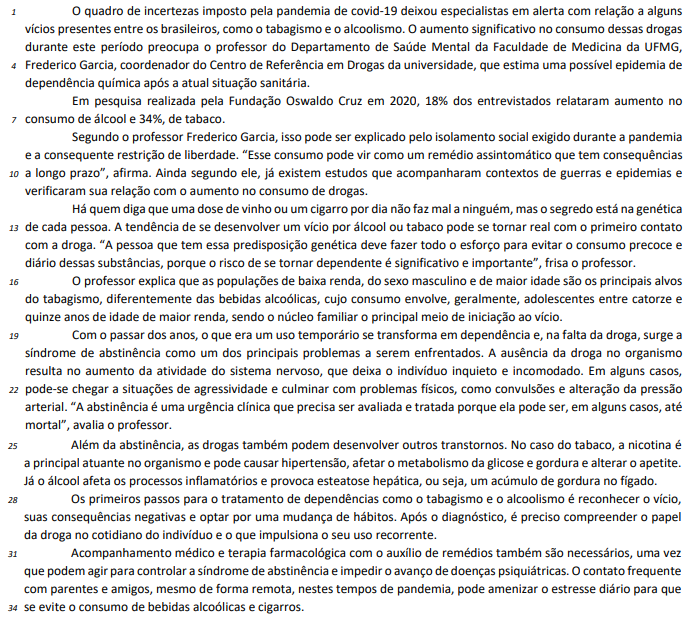 Assinale a alternativa em que é apresentada proposta de reescrita gramaticalmente correta e coerente para o seguinte trecho do texto: “No caso do tabaco, a nicotina é a principal atuante no organismo e pode causar hipertensão” (linhas 25 e 26).